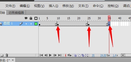 8、用同样的方法在第25帧和第35帧的位置插入关键帧。