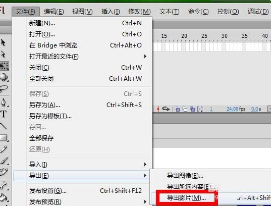 14、点击文件——导出——导出影片,即可导出做好的3D选择图标flash动画文件。