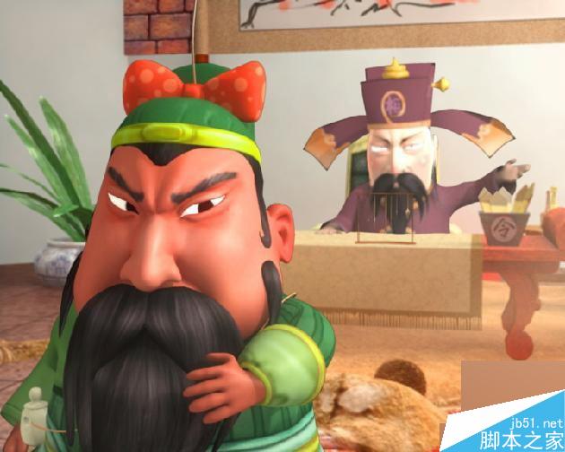 这个镜头里面的场景和角色位置相对固定,且镜头没有摇移动画,在分层时我们只需要将后期可能会调整到的图层单独分离渲染就行了,这里我只分了五个层,1.曹操的色彩层(注意桌子对它的遮挡关系);2.关羽的色彩层;3.场景层;4.灯光雾;5.阴影。
