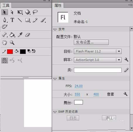 2、刚建立文档后,属性面板内就是整个flash文档的属性,如下图。