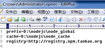 然后运行以下2条命令 npm config set prefix "D:\nodejs\node_global" npm config set cache "D:\nodejs\node_cache"