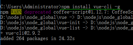 运行npm install vue-cli -g安装vue脚手架