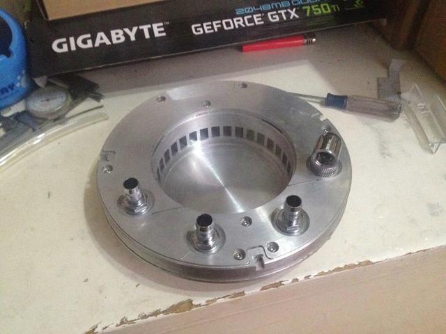 2、底座是关键,集成了水道、散热翅,中间放置水泵,内部结构精心设计了近1个月,在此不详细说明了,已经申报了发明专利,如果应用效果好也好保护下自己的创意。