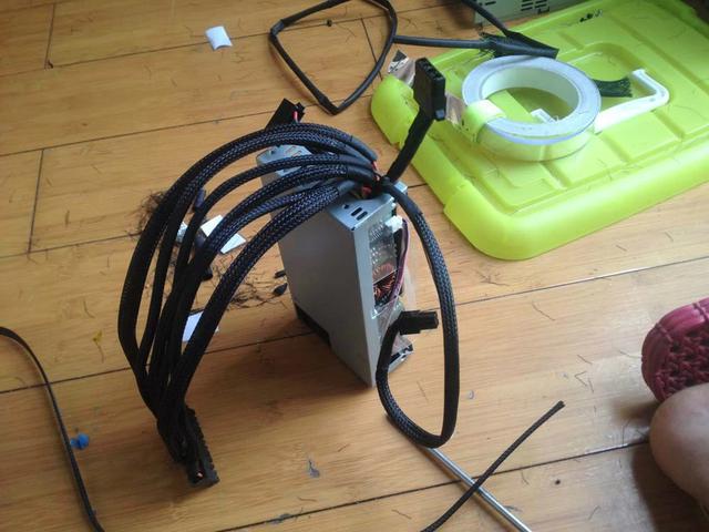 电源包蛇皮,改了两个大4p短头,1个用来给显卡供电,一个用来给磁盘供电。