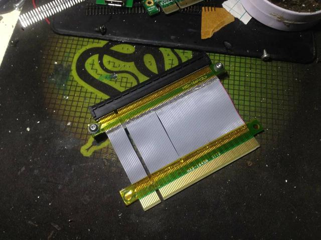 Pci-e延长线太长,本来自己想焊短,结果发现排线剥头不是一般的困难,需要用到专用的机器或工具,放弃了,联系某宝商家,死缠硬磨答应给定制两条短线,过几天发货,等待。