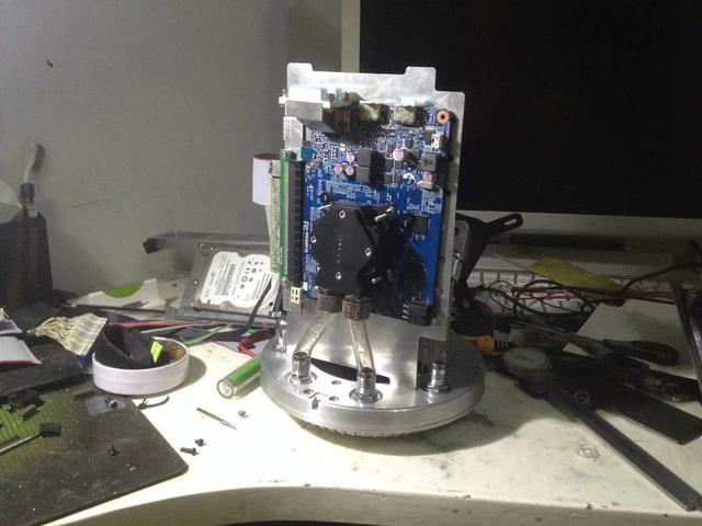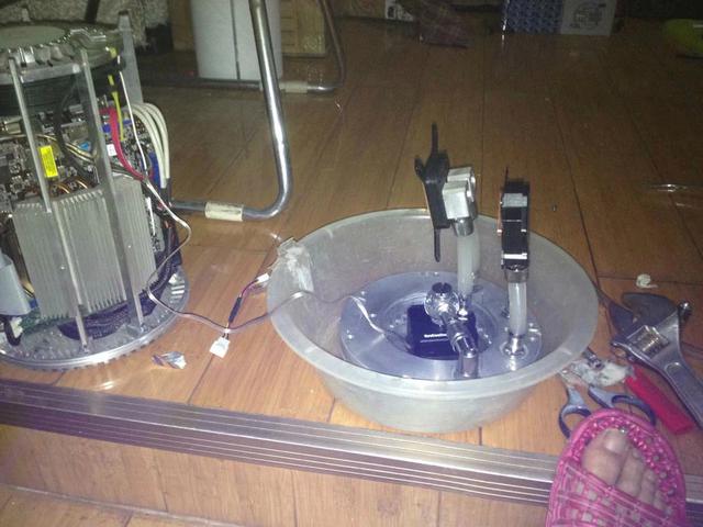 水泵通电,注水,中间注水部分是绞尽脑汁设计的,现在注水很方便,水泵通电时用注水瓶加液体,断电再启动同时补液,2~3次水路的水就满了。水泵声音很轻,能听到细微的“花花”流水声,盖上外壳应该没有噪声困扰。