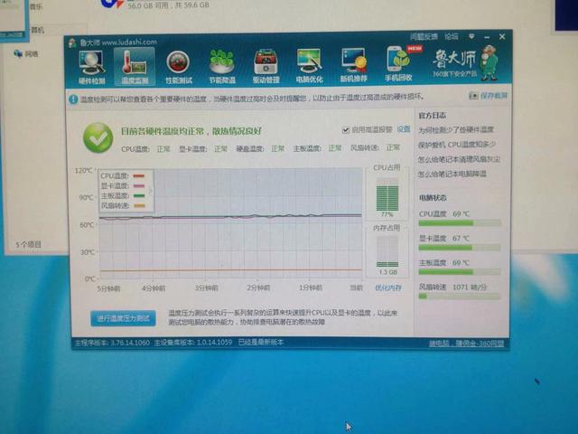 压力测试30分钟,温度开飚,还好在70度左右的可接受安全温度内