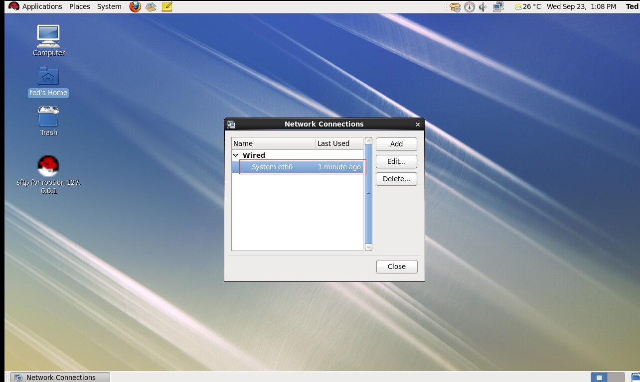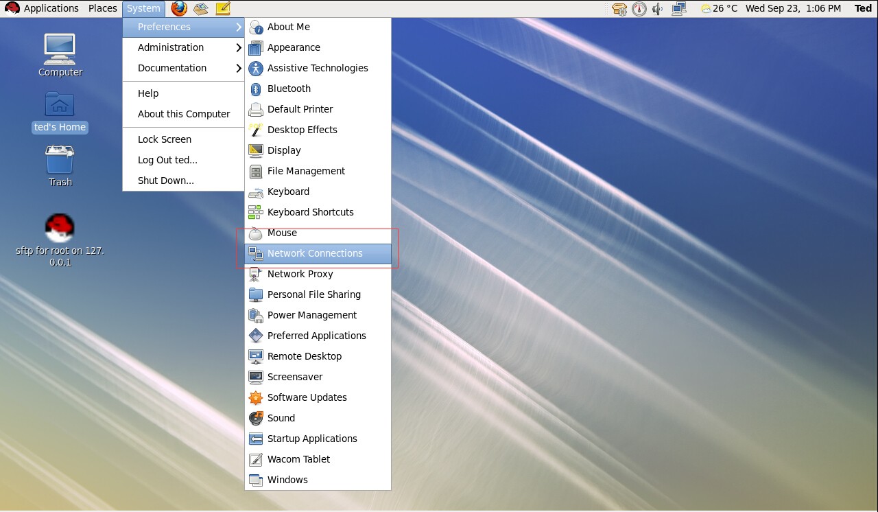 在Red Hat Linux中配置联网最简单的方式就是使用图形化配置工具Network Connections应用程序。它可以设置可影响所有用户的系统范围内的默认值;也可以配置为仅在特定用户登录时,激活特定的网路接口(VPN等)。