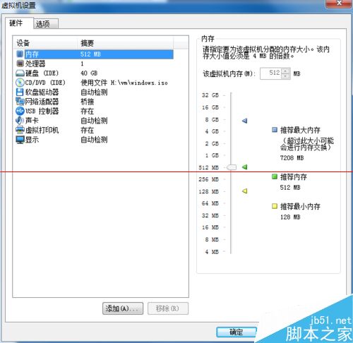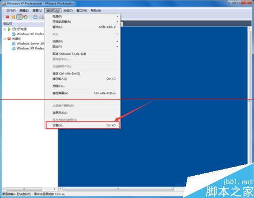 3、在下拉菜单中,点击”设置“ 按钮,打开虚拟机设置界面,如图所示: