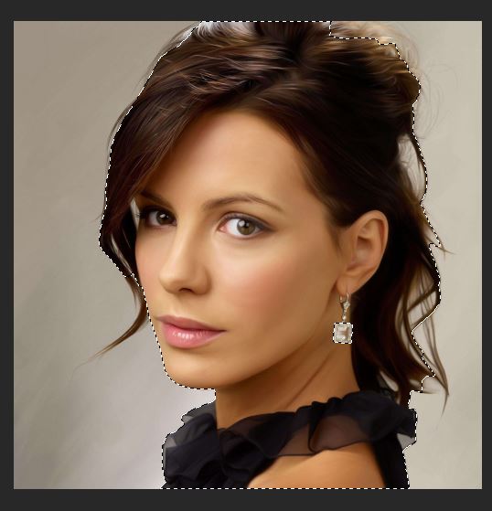 使用画笔调整,顺便把模特的半透明衣领也处理一下,点击确定,得到如下