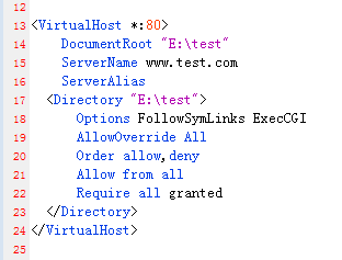 第三步在apache的配置文件vhosts.conf中,配置以下内容