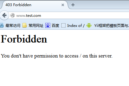 浏览器出这样的页面 但是当你输入www.test.com/index.php时就可以访问index.php的程序需要写完整路径。。。。怎么破。。。将第三步中的18行注释掉 或把options后面的两个单词前面加上 + (加号) 再重启Apache就可以直接访问www.test.com