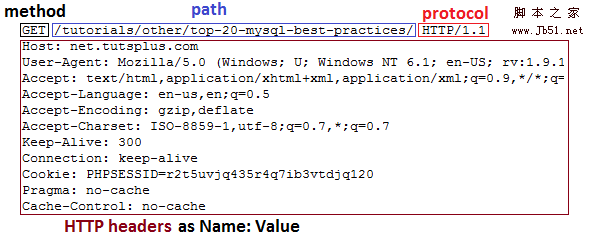 当你在浏览器地址栏里键入一个url,你的浏览器将会类似如下的http请求:GET /tutorials/other/top-20-mysql-best-practices/ HTTP/1.1