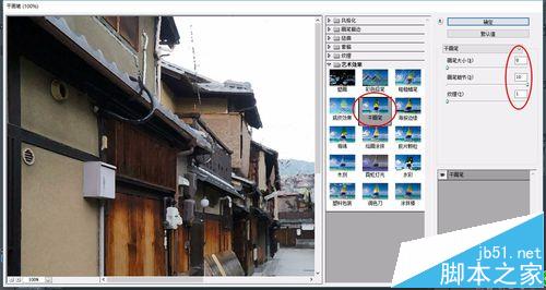 2、接下来使用滤镜效果,点击 滤镜》滤镜库》干画笔,数值如图中所示