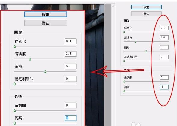 3、点击 完成 之后,再次点击 滤镜》油画 ,处理的数值如图中所示