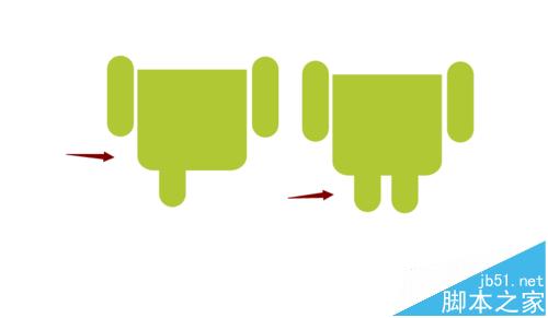 4、然后,我们就可以绘制安卓小人的手臂了,同样用矩形工具,画一个长方形的矩形,然后用形状工具拉一下,就可以了,然后我们在填充颜色即可;效果我们见下图所示;