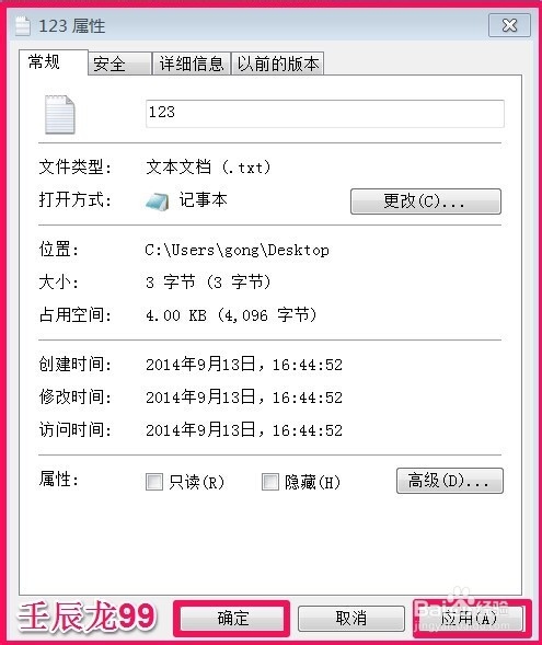 回到记事本 属性窗口,我们点击:应用 - 确定;