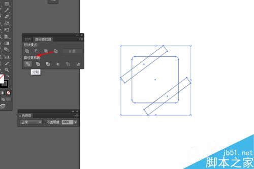 3、接着选中圆角图形和矩形到窗口—路径查找器—点击分割,如图所示