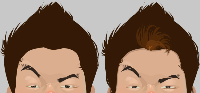 14、如果你想要头发更有质感,可以通过渐变工具来处理,然后添加高光,反光,诸如下图的效果。