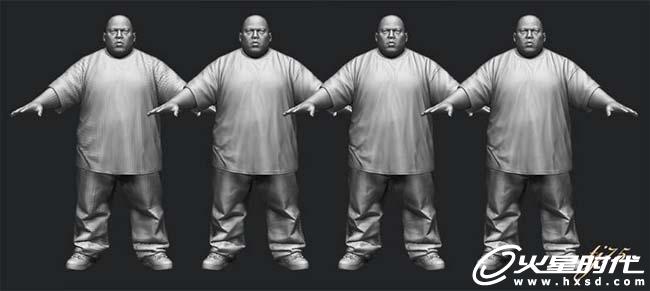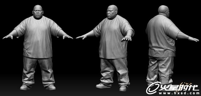 Fatjon的高模结束后我开始做打碟机,(打碟机的过程我就不讲了)然后将打碟机导入ZB里,来摆Fatjon的pose。Fatjon的基本Pose满足了这个要求,我用了ZB的Rotate来摆动,头,手臂,手指,躯干。当然调好后相应的用笔刷处理一些变形。