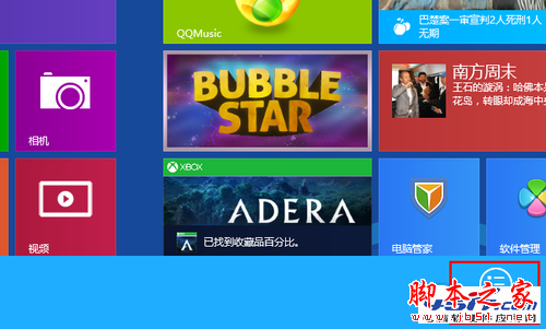 如果想要卸载的Win8应用没有固定到“开始屏幕”,那么我们可以在“所有应用”中找到它。右键点击开始屏幕的空白处,如果是触屏的话则是从底部向上滑,这样在弹出的工具栏中就能看到“所有应用”的入口。