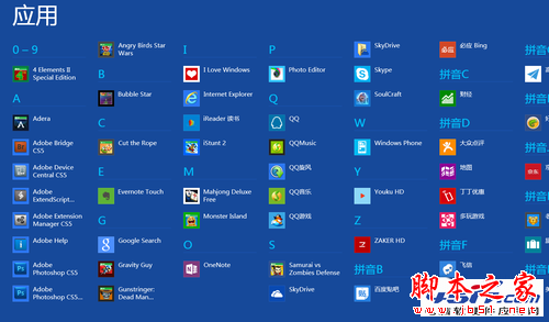在这里可以通过字母排列来找到相应的应用,好在Win8应用的排序都默认很靠前,桌面程序都在后面的位置。找到之后使用上面一样的方法来卸载应用就可以了。