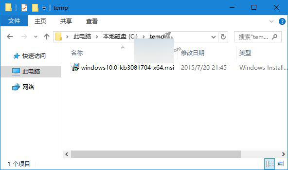 • 下载后解压,会得到windows10.0-kb3081704-x64.msi文件;