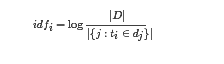 其中,|D| 是语料库中的文件总数。 |{j:ti∈dj}| 表示包含词语 ti 的文件数目(即 ni,j≠0 的文件数目)。如果该词语不在语料库中,就会导致分母为零,因此一般情况下使用 1+|{j:ti∈dj}|。同样,如果用更直白的语言表示就是
