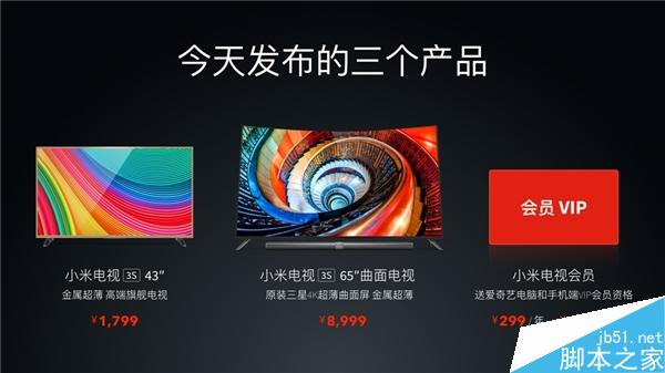 以上就是负责手套最近收集整理的关于小米电视3S 43寸、65寸曲面电视开卖时间公布 现货发售的全部内容,更多相关小米电视3S内容请搜索靠谱客的其他文章。