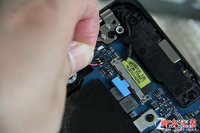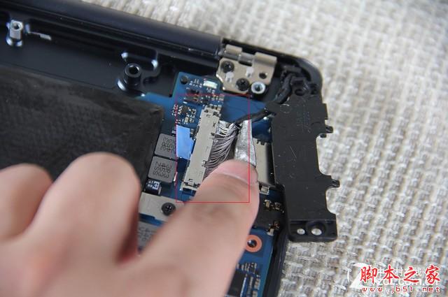 拧掉五颗螺丝之后,要记得拔掉下图红框标出的排线接头。