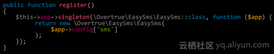 首先依赖短信发送客户端包composer require overtrue/easy-sms然后新建配置 /config/sms.php ,内容嘛,就按照 easy-sms 首页的说明增加即可,先贴出我们的配置内容(为了减少文章字数,只保留阿里大于配置):