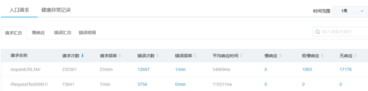 3.慢响应总览折线图:观察周期内,慢响应、极慢响应、无响应的请求数量变化趋势。