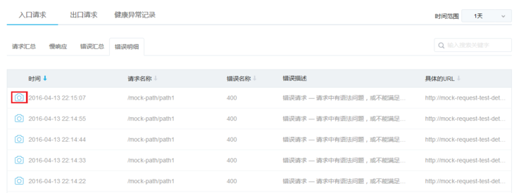 如果需要进一步确定问题的原因,还可以使用快照功能。异常记录前面若有照相机图标,表示蜂巢记录了这次异常记录的快照信息,如下图所示: