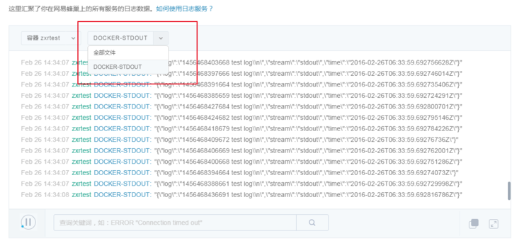 选择某个集群或容器后,你可以再选择文件进行进一步的筛选。不过在容器中,文件通常仅有「DOCKER-STDOUT」。