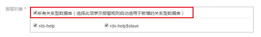 选择了报警模块后,你在该模块中已创建的对象都会显示在报警对象一栏。倘若进行勾选,表示上述定义的报警规则适用该对象,默认全选。全选框被选定时,以后在该模块中新创建的对象也会自动适配该报警。