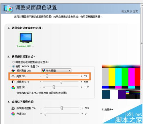 5、这时看到右方已经出现可以调节光度的选项了,但是这时候还是无法调节,因为要先选择“使用NVIDIA设置”后才能自行调节。