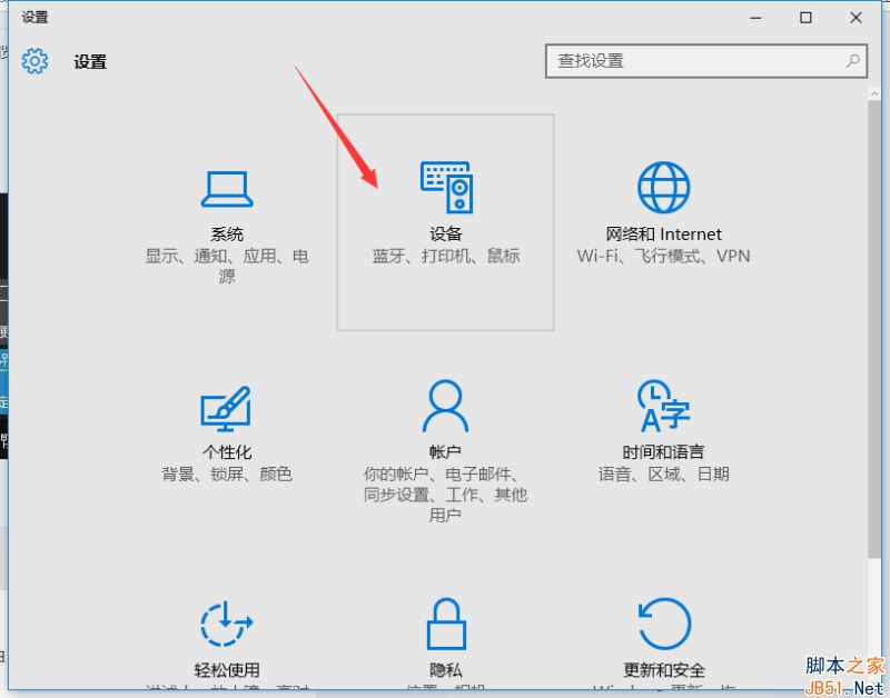 1、按Win+R打开系统设置窗口,点击其中的“设备”选项。