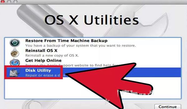3、选择磁盘工具。点击下一步按钮。载入磁盘实用程序后,你会看到硬盘磁盘列表。