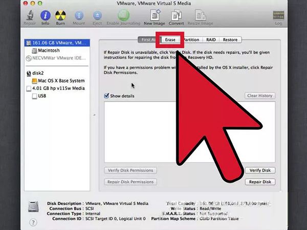 4、选择Macintosh HD磁盘并点击清除选项卡。