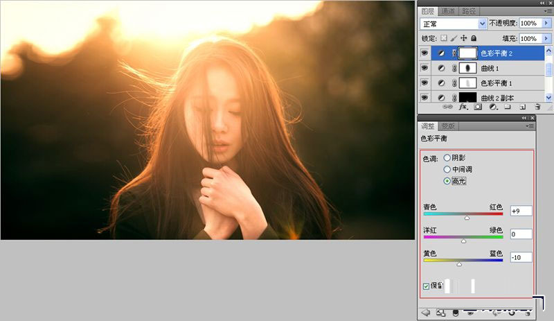 操作:修改色彩平衡数值。