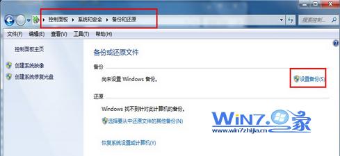 1.依次打开【控制面板—系统与安全—备份与还原】,在备份与还原设置窗口中选择设置备份。