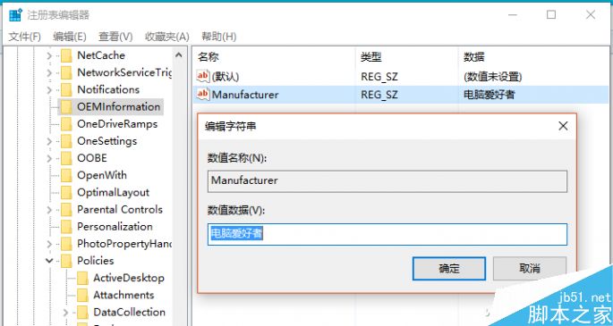 在右侧使用鼠标左键新建名为Manufacturer的字符串值,双击更改数值数据,填入咱们的自定义信息即可。