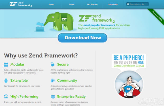 由最流行最专业的PHP IDE产品Zend Studio的开发商开发,Zend Framework (简写ZF)是开源的,主要用于Web应用程序的开发和服务,ZF采用 MVC(Model–View-Controller) 架构模式来分离应用程序中不同的部分方便程序的开发和维护。