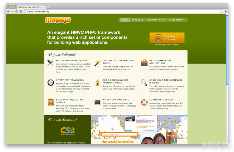 Kohana是个开源的、面向对象的MVC Web框架,是使用PHP 5来构建的。它的优点是快速、安全和体积小。