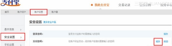 1.进入支付宝—账户设置-安全设置,点击支付密码一栏后方的【修改】按钮。