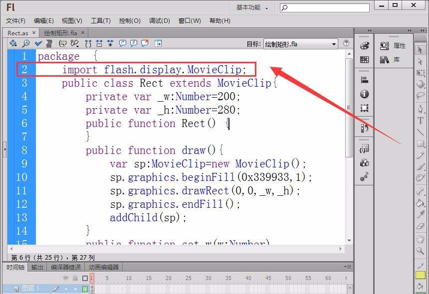 flash中想要自定义一个类,调用它方便的在Flash中绘制矩形,该怎么实现呢?下面我们就来看看详细的教程。