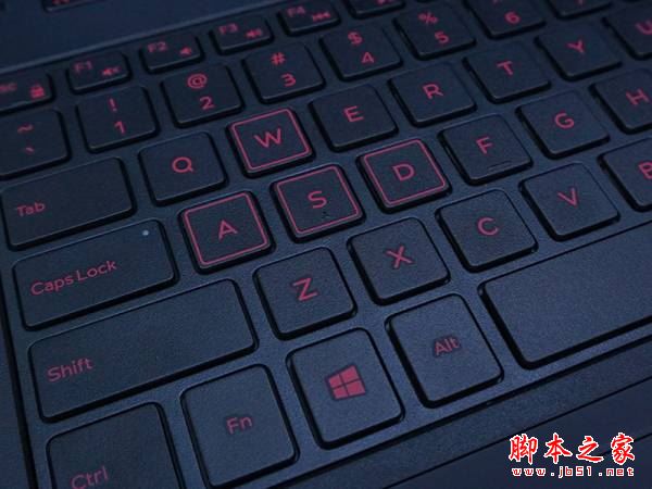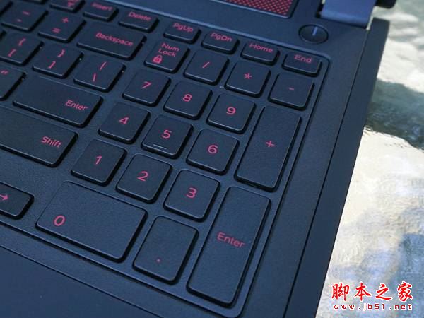 C面主要是输入功能区,也就是我们日常说的键盘和触控板。戴尔游匣SPEED游戏本采用了全尺寸的防泼溅键盘,右手边还设计了同样规格的小键盘,使用起来更加的方便。该键盘还采用了防泼溅设计,可以防止在情绪激动时水杯侧翻而造成的“破坏性”后果。按键同样采用了红黑搭配,黑底红字在视觉上更具刺激性,游戏中经常用到的WASD按键也采用了特殊设计,配备了红色的边框,特殊意义更加明显。