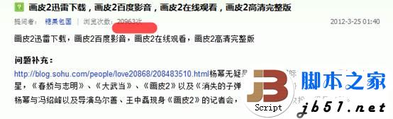 从用户体验的角度来说,关键词堆积都是不好的体验,但是这招对排名有很大帮助,观察了“画皮2”的提问,可以很明显发现关键词基本都是“画皮2下载”,“画皮2百度影音”,“画皮2在线观看”,在画皮2这部电影上映后的几个月,这些词肯定会很火。提问和补充提问的内容里,叠加这些关键词,对问题排名有很大的帮助。不仅仅如此,只提个别问题,排名好的概率肯定不大,多提一些相似问题就可以提升概率。不过个人不太喜欢这样做,想尝试的站长倒是可以一试。