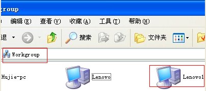 9、检查管理员登陆是否正常,在主机上双击“网上邻居”“查看工作组计算机”,在Workgroup里打开“Lenovo1”。