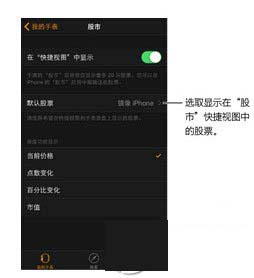 轻按“股市”快捷视图来打开“股市”应用。